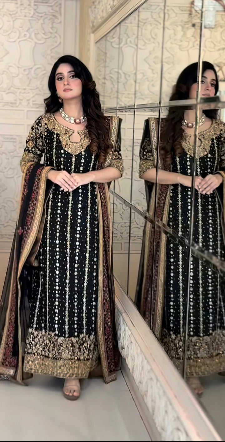 The ensemble is paired with a statement dupatta that frames the outfit beautifully. Whether it’s an intimate evening or a grand celebration, Zainab is designed to leave a lasting impression — quietly powerful, eternally elegant.