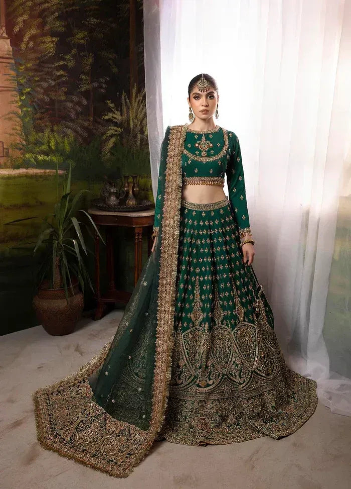 Evoking the femininity of a sweeping silhouette, Miyah is a breath of fresh air. Fashioned from dainty net fabric in an ombré ice blue hue, the majestic pishwas showcases a myriad of heritage crafts such as resham and tilla, arranged with great attention to detail in a meticulous linear pattern. Paired with a silk churidaar and an embroidered organza dupatta, this piece is sure to make heads turn at every event.